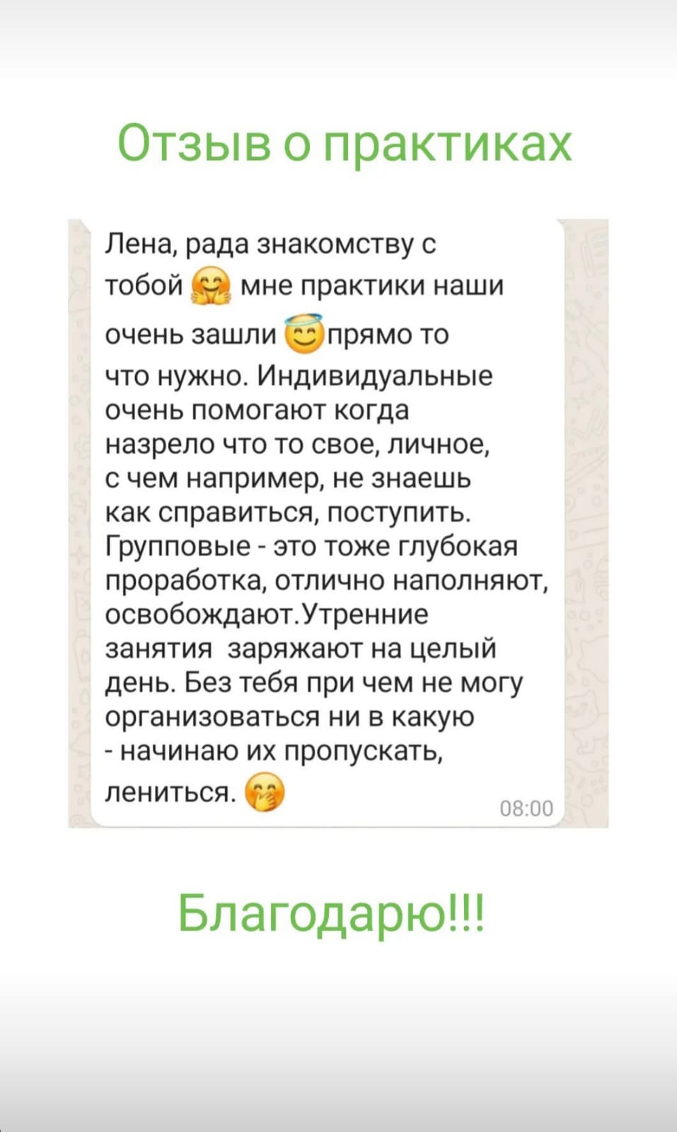 — Каждую неделю zoom-встреча с Еленой в формате вопрос-ответ + отработках практики онлайн.